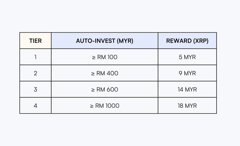 Tier 1 rewards are limited to the first 50 users who create an Auto-Invest plan with any digital asset available on our Hata Malaysia platform worth RM100.